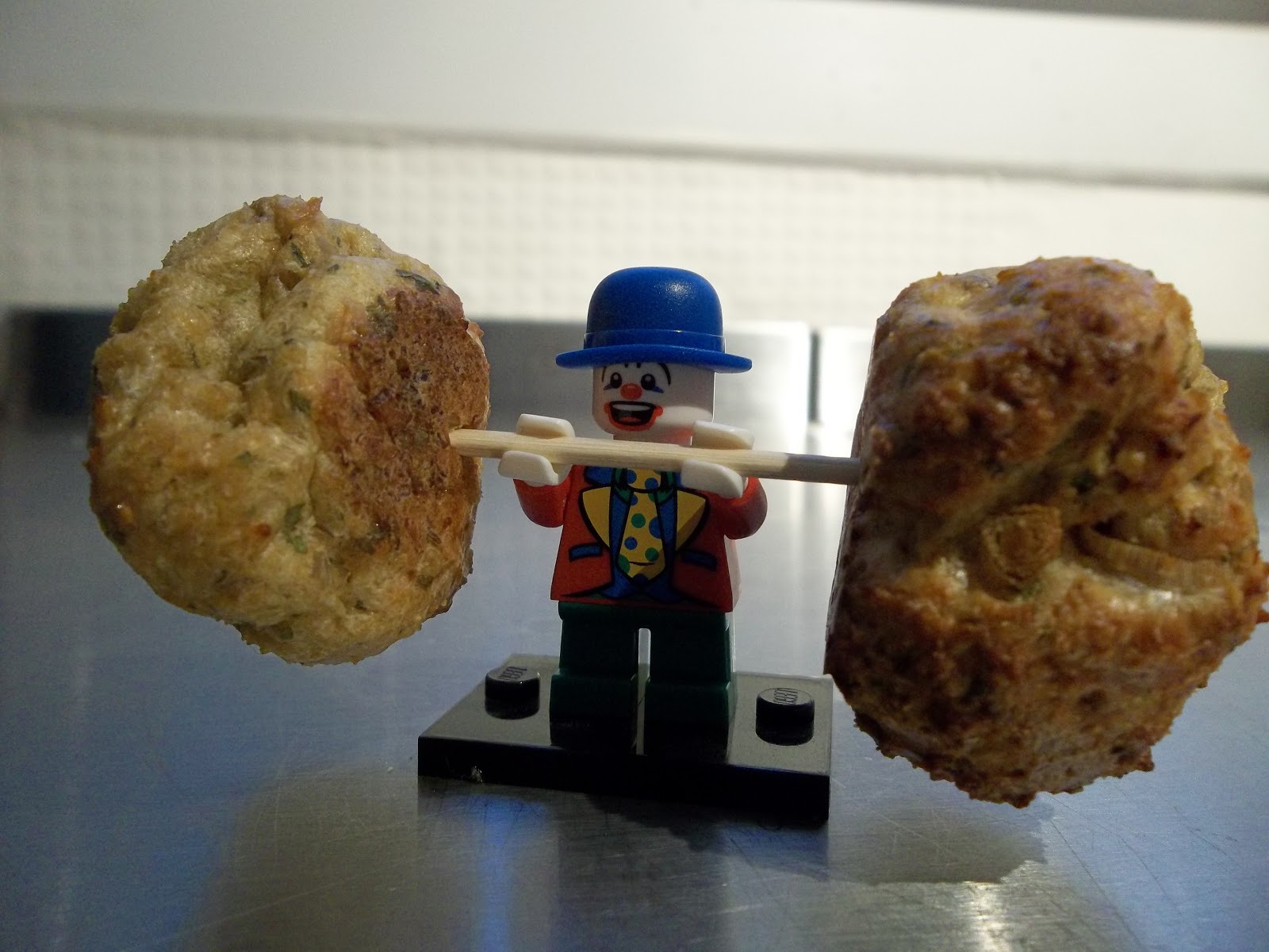 Chicken & Lemongrass meatballs = lego man dumbells! (They were really tasty too!) |