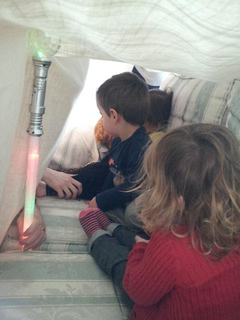 Sofa tent - 3 toddlers and one lightsabre!