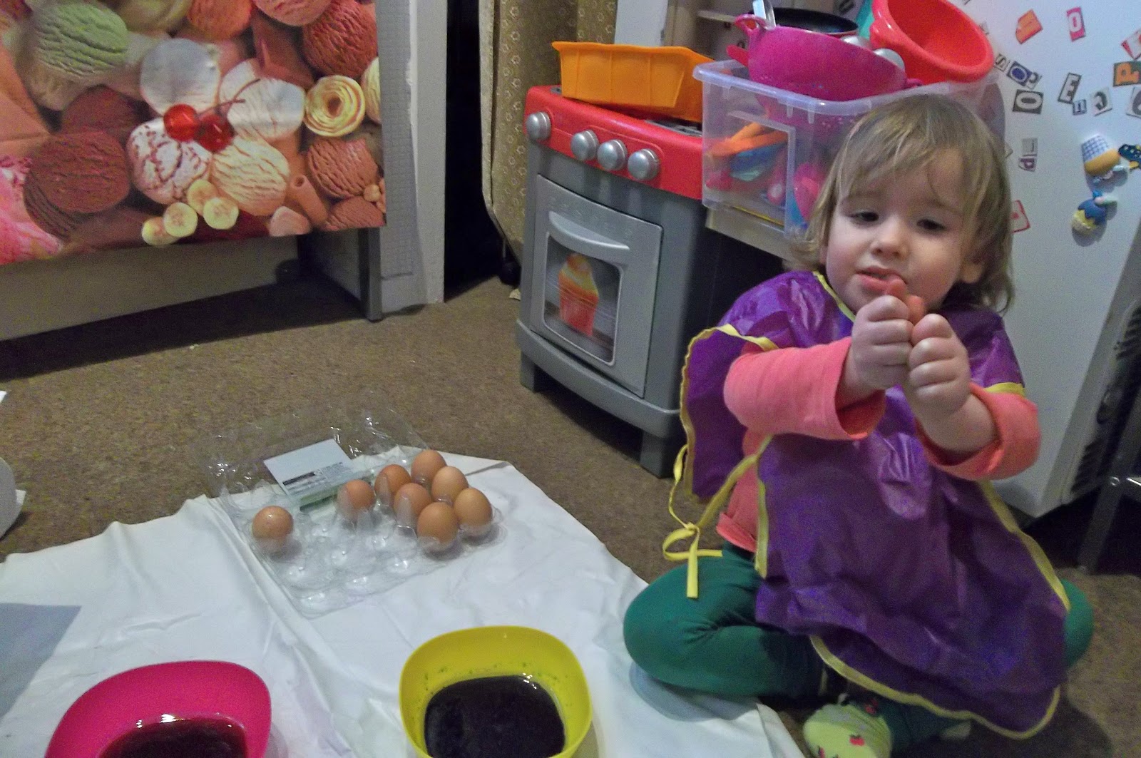 So I'll start with the eggs, and then segue straight into a sort of photo diary of our day - today was a bank holiday, so no work for me :o) Through some creative shifting of working days, we jigged things so that I looked after Mini-M today, and Mr E worked, but took a day off earlier in the week on a nursery day to get a bit of time to himself. Parental juggling!