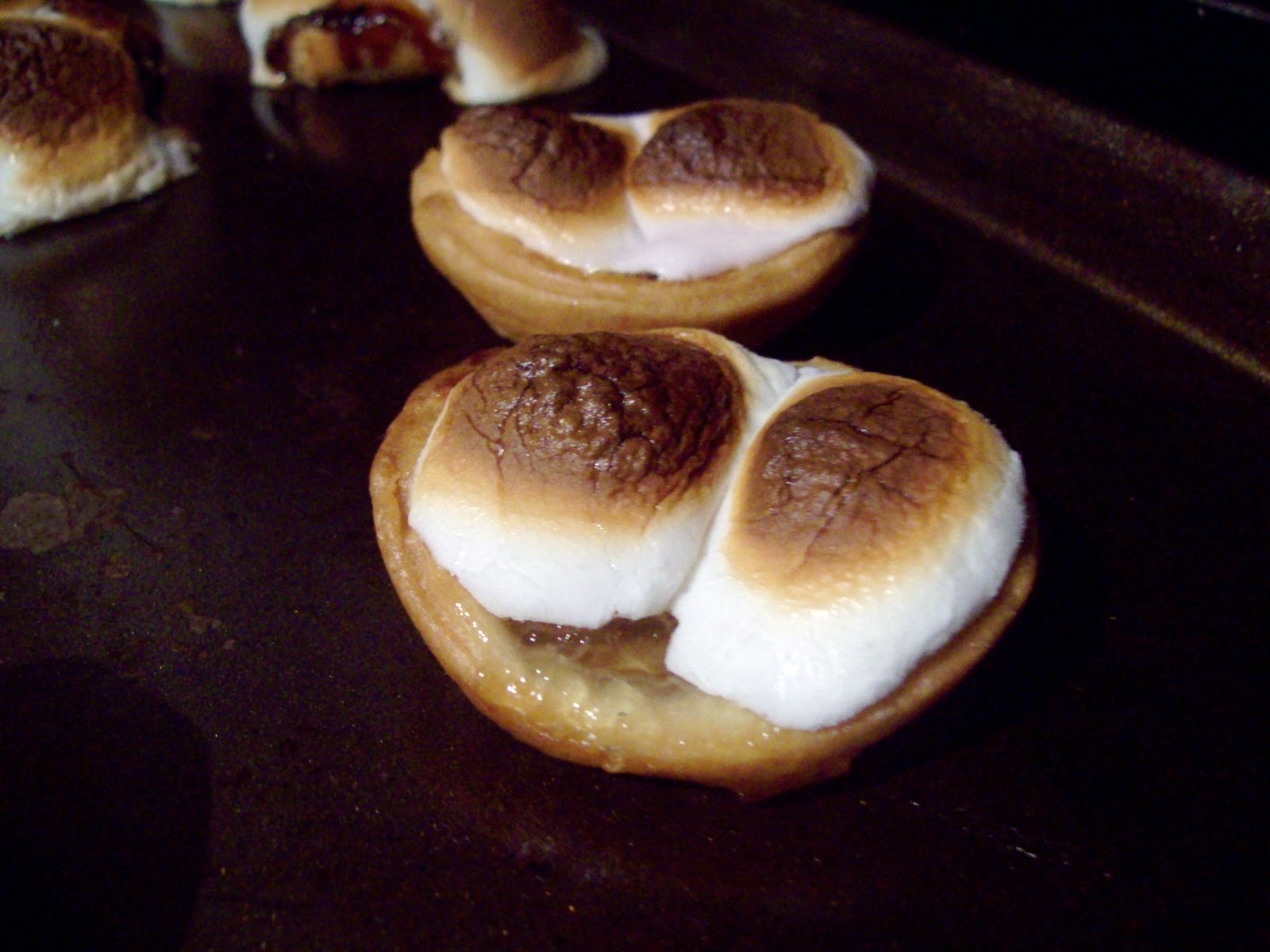 I made some jam tarts yesterday to use up leftover pastry, and tonight I put marshmallow on the top, and grilled them until the marshmallows melted and browned on top.