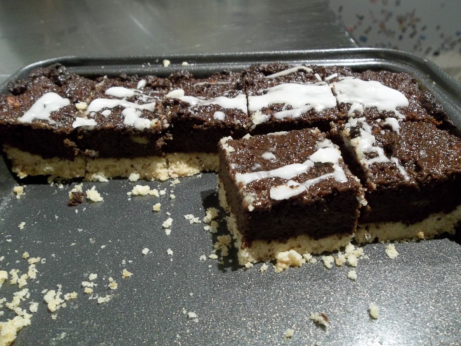 So I did. In my head I envisaged a kind of poppy seed millionaires shortbread, without the caramel or chocolate topping. It pretty much worked out exactly like that, and better - I'll definitely be making it again. The shortbread bottom was based on this BBC Good Food Millionaire's Shortbread recipe, and the topping by these Poppy Seed Cookies from Jar in the City, which I de-nutted then chocolate-d up.