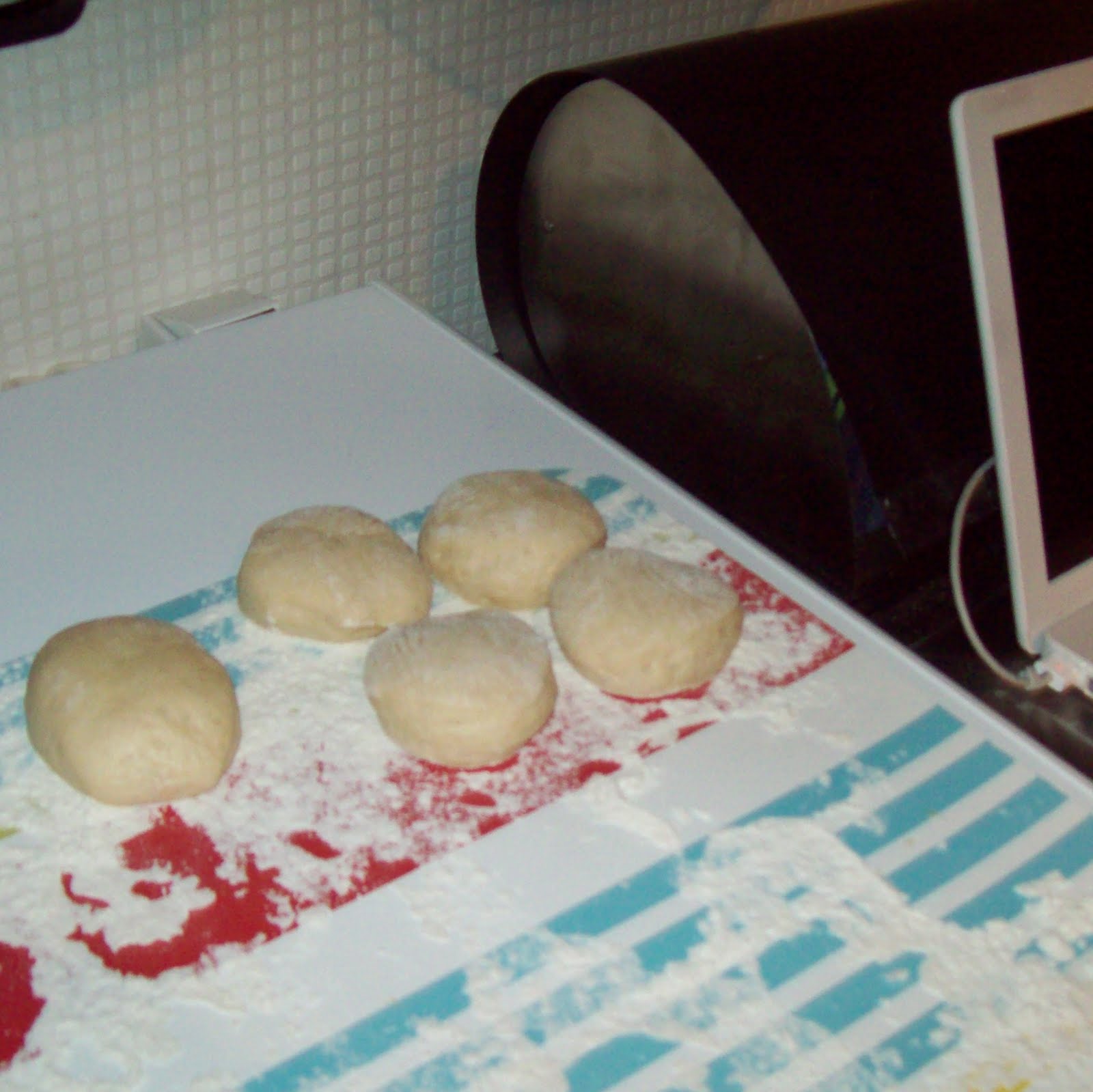 Both doughs were ridiculously sticky to work with, particularly early on in the 'kneading' process which started off a lot more like swirling your hands around in super goop. But with a wee bit of extra flour added, they both came together fine.