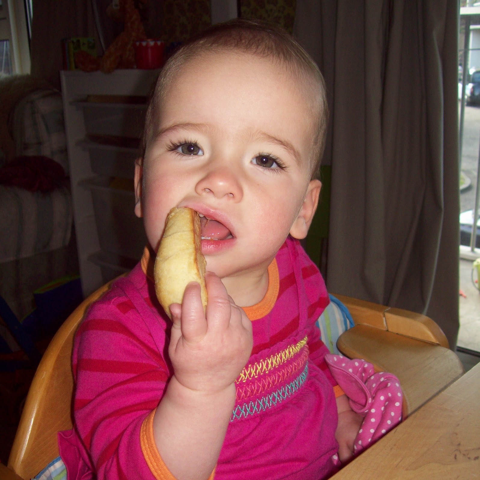 Contemplating whether or not to throw it or eat it (whilst clutching a hat with her other hand) |