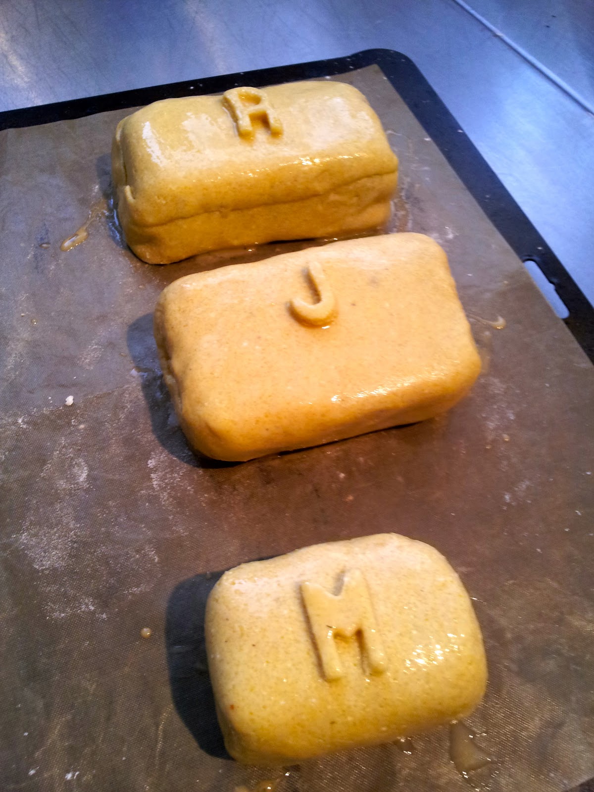 Use it to wrap your loaves (big or small), just like a birthday present. Re-roll the trimmings.