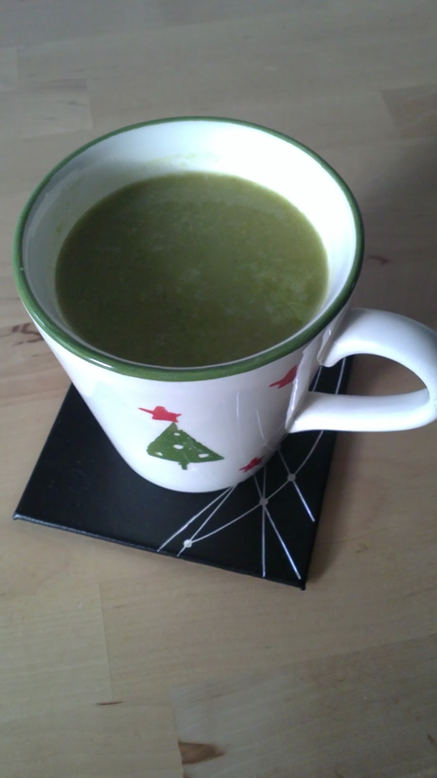 So I decided to make soup, took a look in the fridge, and found that the only soup-y ingredients I had were an onion, and some sad looking herbs that I discounted at the outset. I'm quite glad there was nothing else, and I had to resort to the freezer, because the resulting Pea soup was lovely. And ready in 10 minutes. Fast, tasty, healthy and warm - all good things for a January recipe.