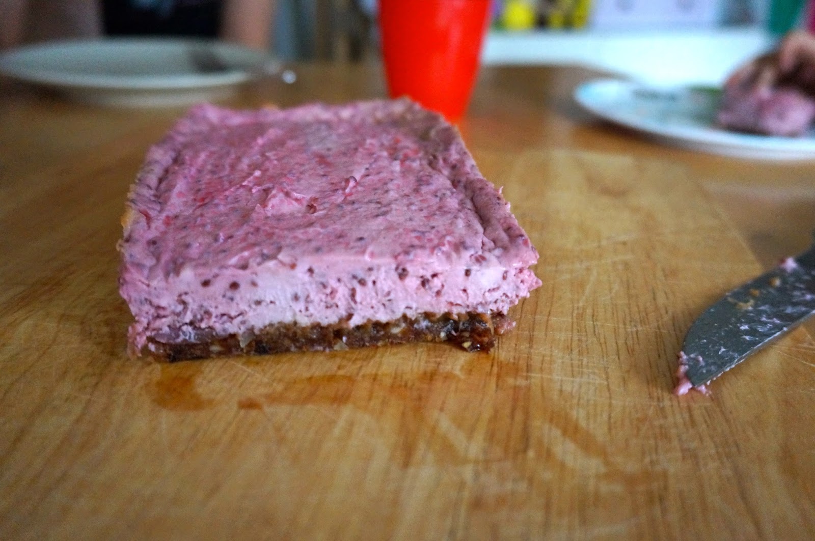 It is in fact a dairy free baked cheesecake, that really honestly tastes like baked cheesecake. But without the cheese, and with a date and almond base, and not too much added sugar.