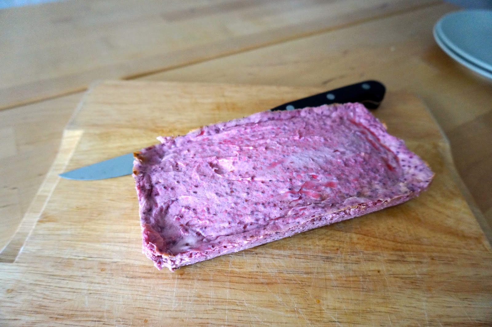 This creation incorporated another recent discovery - fresh fruit jam made with chia seeds. It's insanely easy and tasty, and shall feature in a future blog post coming very soon, once I remember to take a nice picture of said jam.