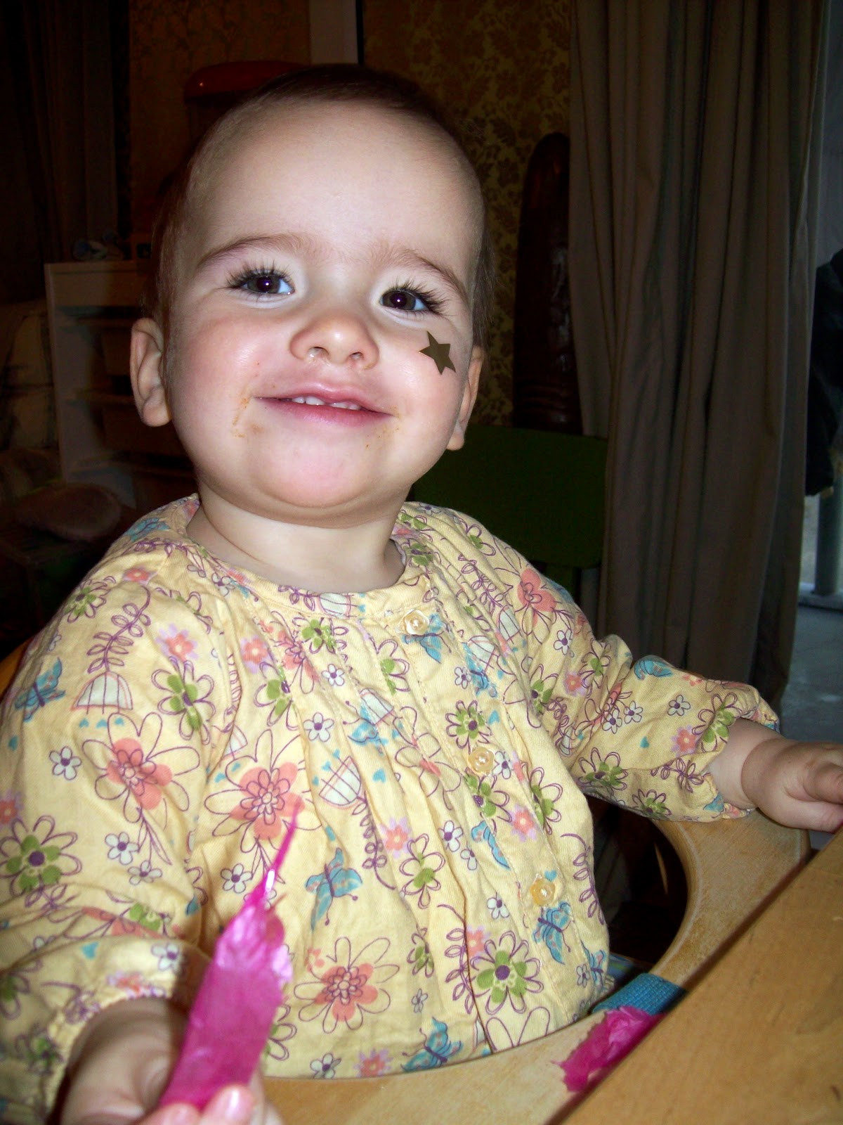 This was not a set up - she stuck the star there, and was very pleased with herself! |