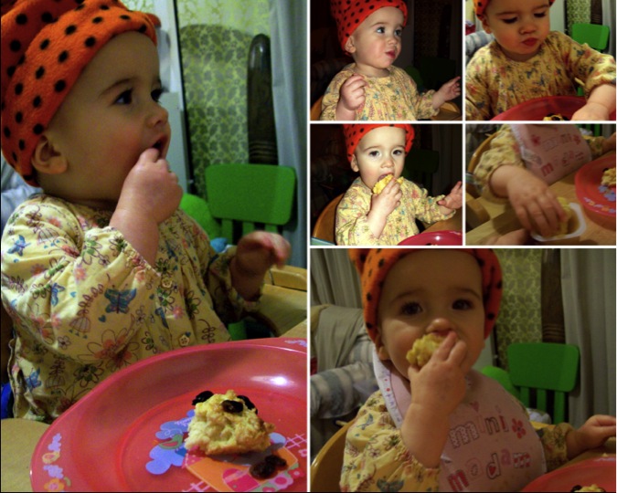 Caught in the act - raisin theft - and very almost a nasty scone/sock incident! |