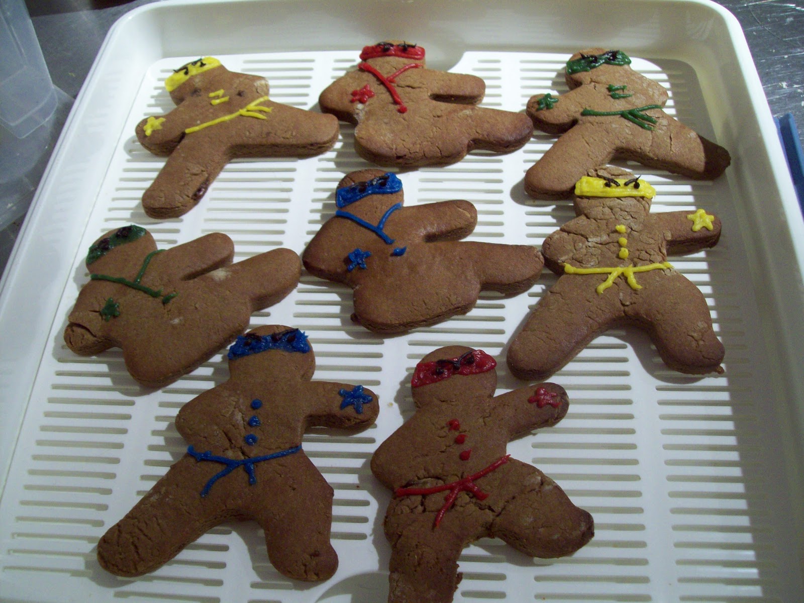 I just used a regular, bog standard gingerbread recipe, which due to an unfortunate discovery mid way through (I discovered I had no syrup, and almost no treacle) was fairly heavily substituted with date syrup, which changed the texture a bit. It tasted great, but mode the ninjas look slightly like they have a skin condition!