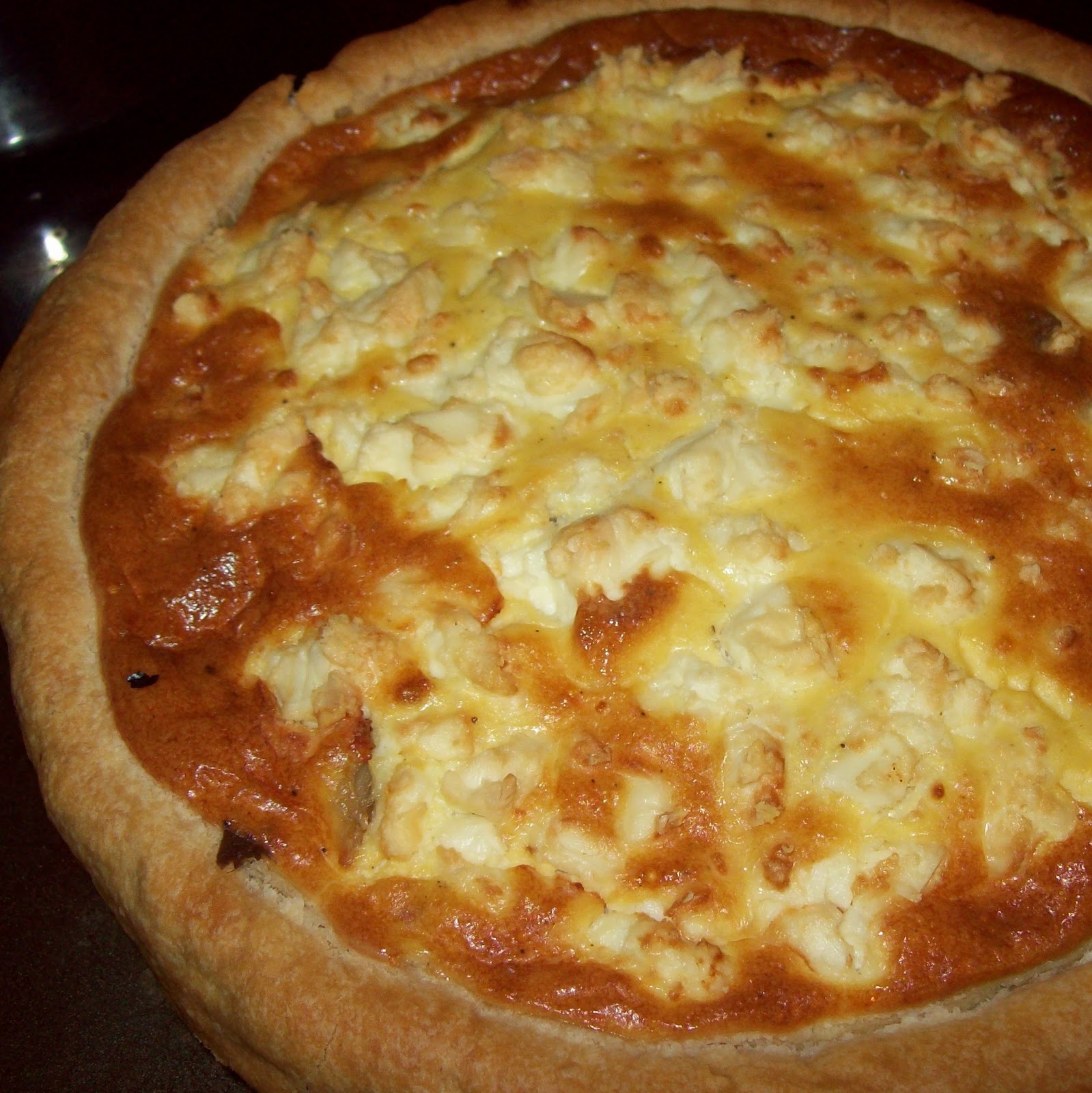 Smoked mackerel and chickpea quiche with feta (I think!) |