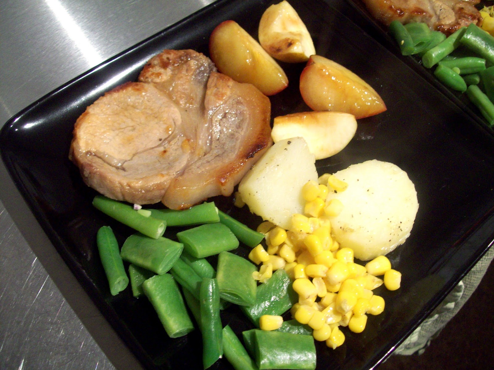 I added a quartered apple and quartered plum to the pan for the last 5 mins or so of cooking, for a fruity touch. Mmmmm.