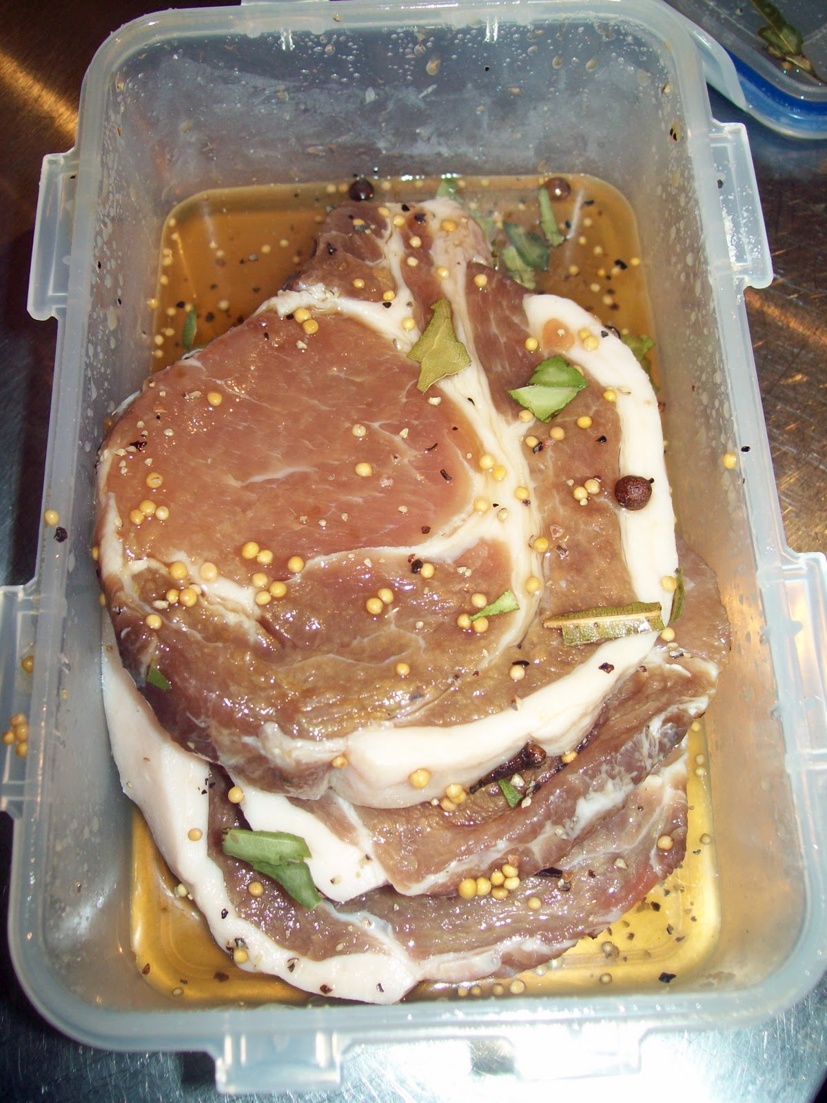 I've been on a bit of a River Cottage kick recently, which started with the Baby and Toddler cookbook, and has progressed via the family cookbook to River Cottage Every Day, where I found a recipe for Overnight home-cured bacon chops.