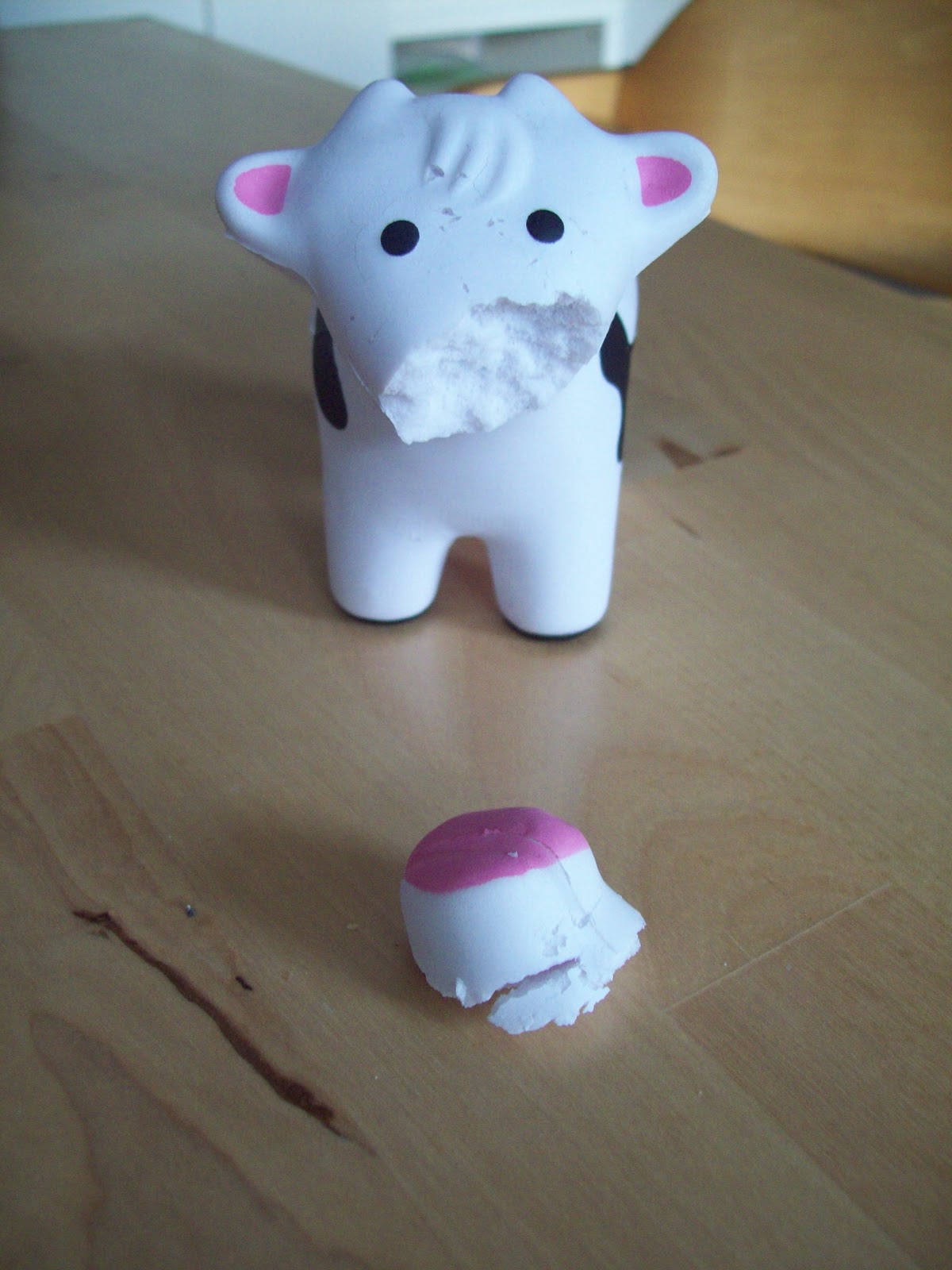 Mini-M got a toy cow from the vet stand at BBC Good Food Live at the SECC. This is what she did to it!