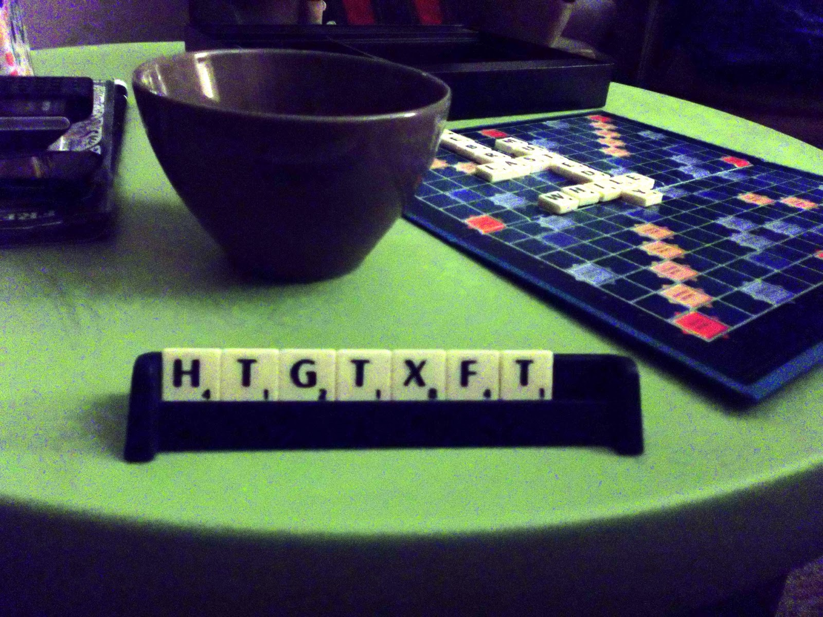 Christmas Eve finished with a quiet game of Scrabble after a lovely family gathering over the Forth in Fife. Mini-M slept, and Mr E and I put our feet up and pondered double word scores, triple letter scores and whether or not any words contained no vowels...