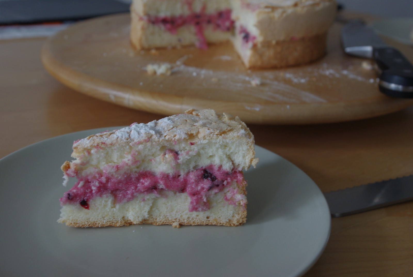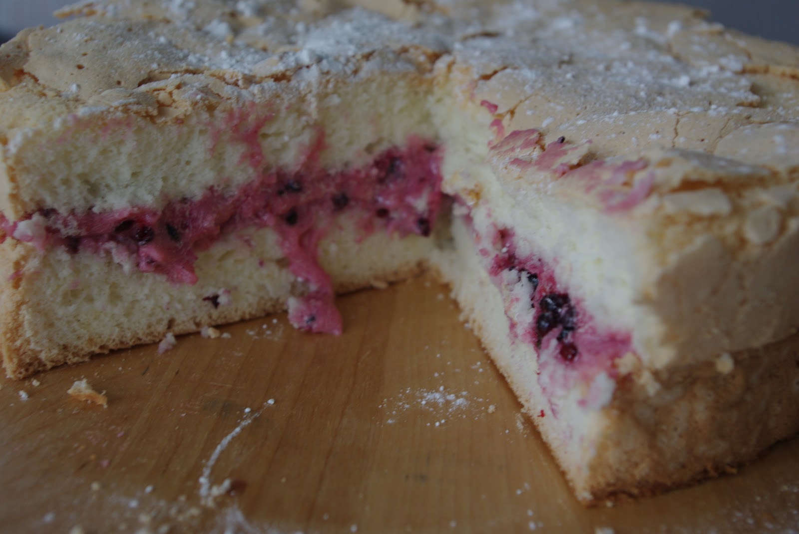Now that's a proper cake. Sweet, fluffy, light, filled with fruity icing - oh, and made from potatoes. Yup, the only flour in it is potato flour.