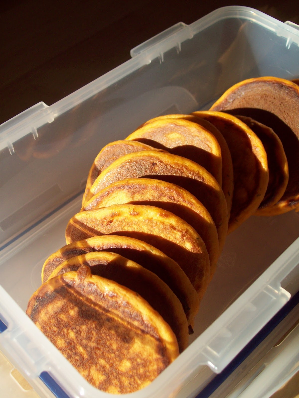 I've been making small batches which keep for a few days but they also freeze well, and after a triple variety baking session the other day, I've not got a pancake stash in the freezer too.