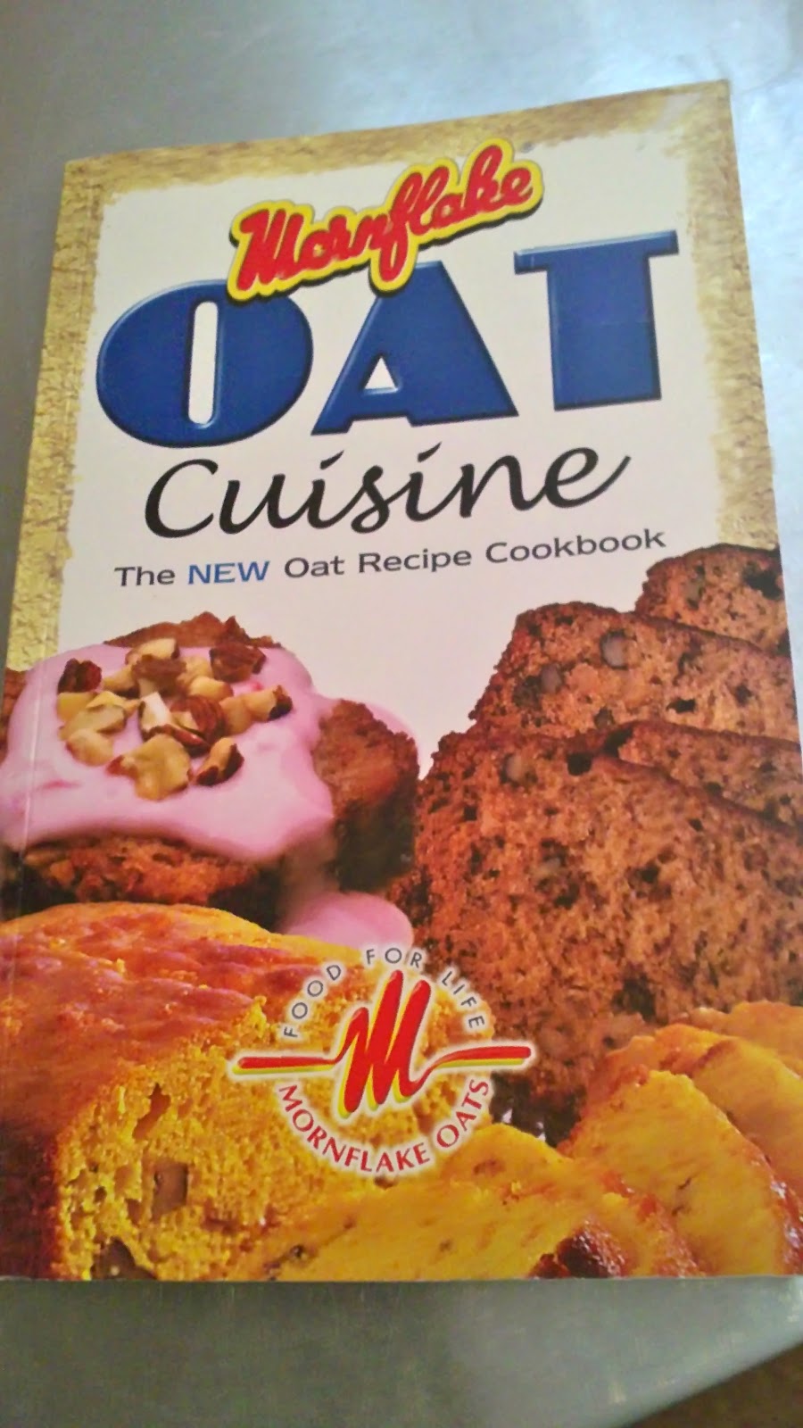 I asked Mini-M to choose my book, and I'm sure there's some sort of conspiracy going on here... she chose 'Mornflake Oat Cuisine' which I 'rescued' a couple of years back from a clearance outlet because the retro feel appealed to me. (Just to clarify, when I say 'rescued' I mean bought because I felt sorry for it, not shoplifted!)