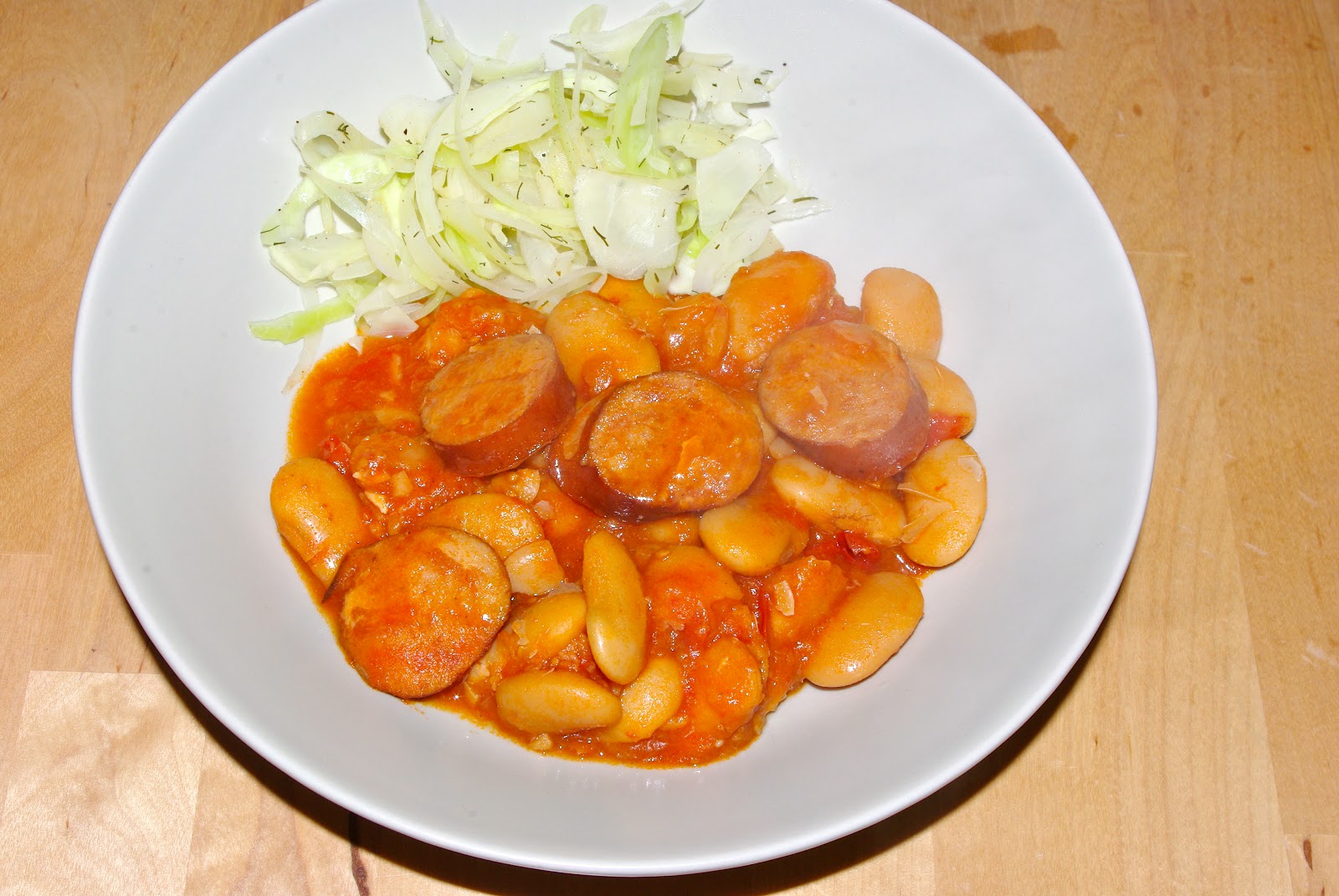 This is good hearty winter fare - great for tea on chilly days. Since it contained sausage and tomato, 2 of her favourite things, Mini-M declared it 'num num' (although she did leave all of the beans, so not a complete success!).