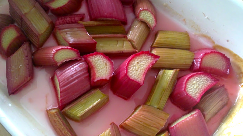 Roasted rhubarb turns the most gorgeous pink colour |