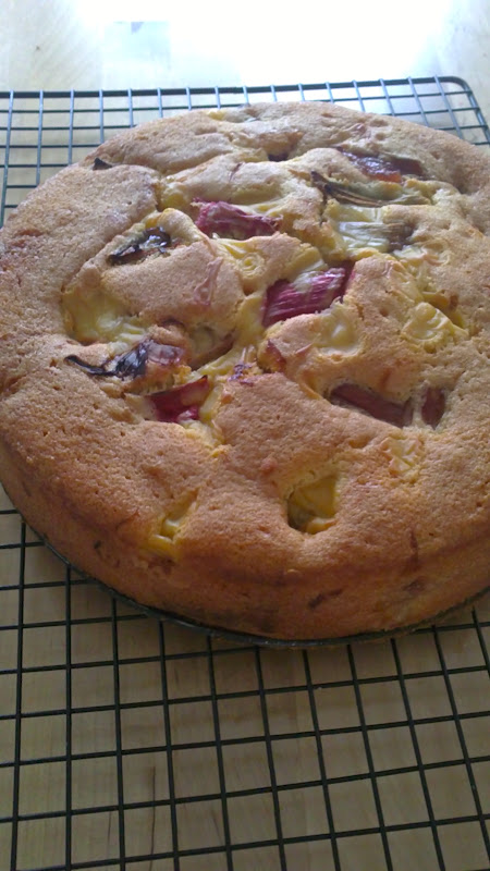 Firstly, I made a Rhubarb and Custard cake using this BBCGoodFood recipe, which I de-dairified by using dairy free margarine (200g rather than 250g, as I find it more greasy), and ready made soya custard dessert.