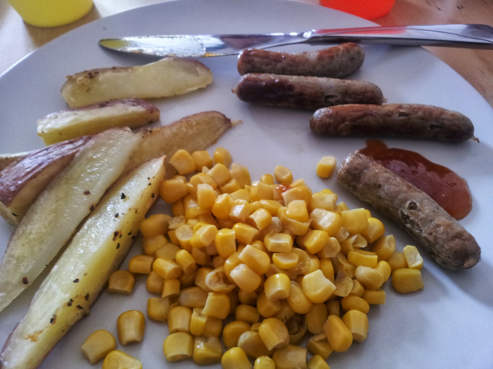 It did: although I'm now feeling ashamed we had sausages twice in a week. Ah well - they may have shortened our lifespan significantly, but they tasted good. And now that I look at the photos again, we still had pasta twice...