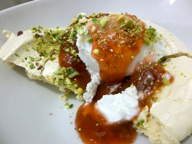 Alternatively, you can find a wealth of information and a detailed description and unflavoured Ottolenghi recipe in the Guardian newspaper Meringue Masterclass. To this, add 1 tsp rosewater and 30g finely chopped pistachio nuts to arrive at the same thing.