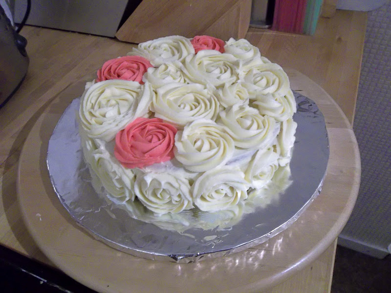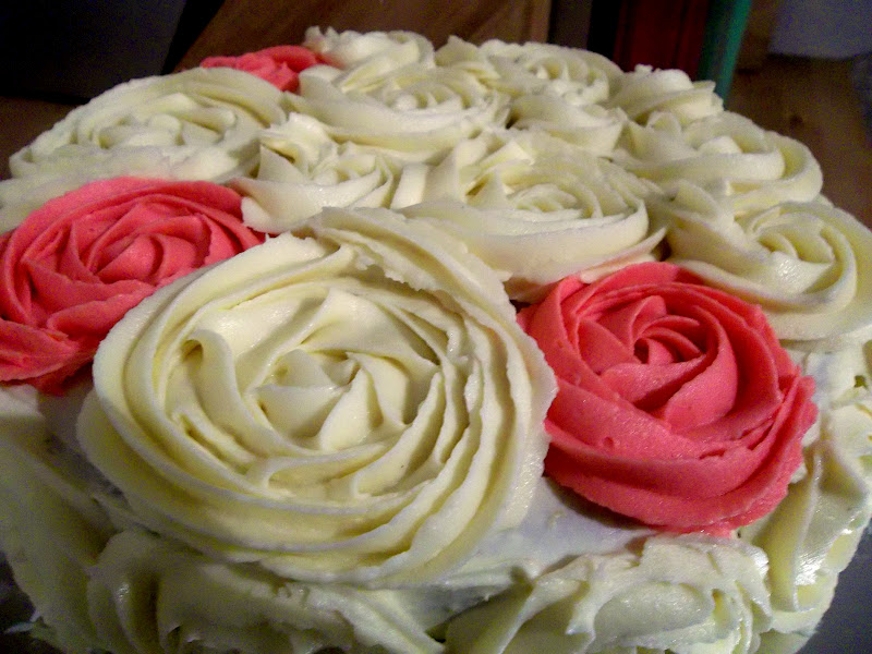 Anyway, I thought it would be perfect to enter into February Tea Time Treats - an monthly blogging event hosted by Karen at Lavender and Lovage, and Kate at What Kate Baked. This month it was Kate's turn, and the theme was Romance. If a whole cake-full of swirly white chocolate buttercream roses doesn't scream romance, the I don't know what does!
