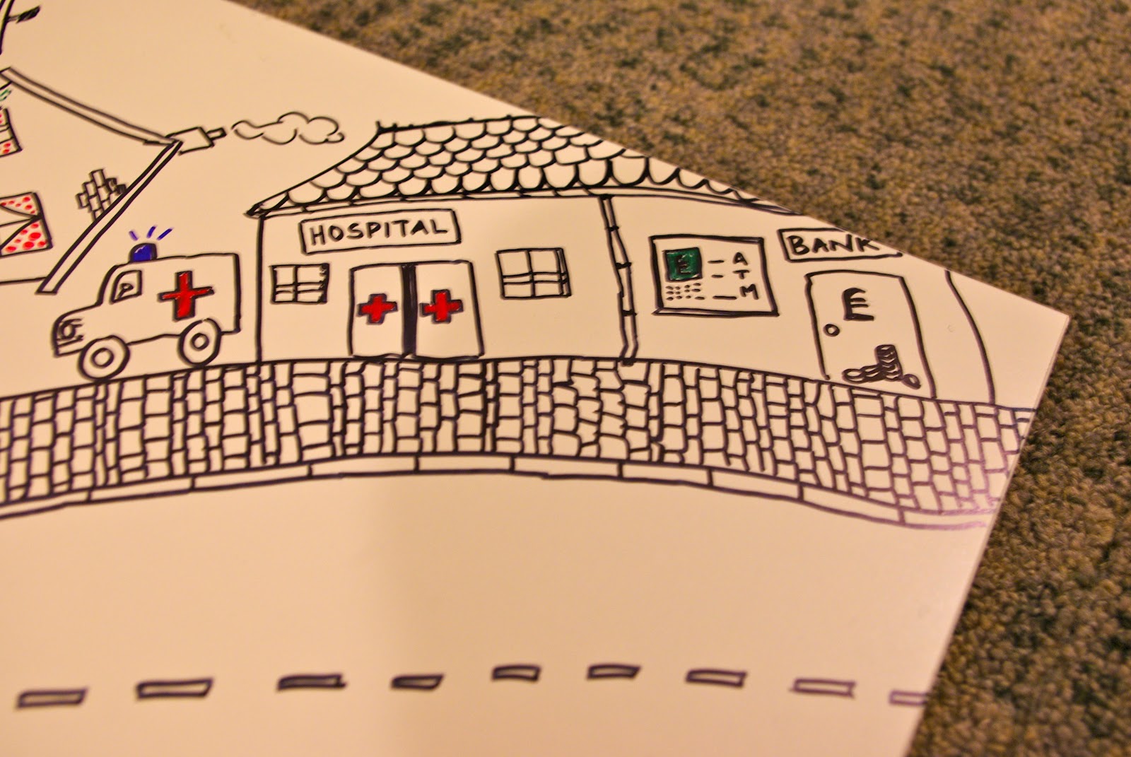 A semi-detached hospital and bank (perhaps to make it easy to get cash for the extortionate car parking) |